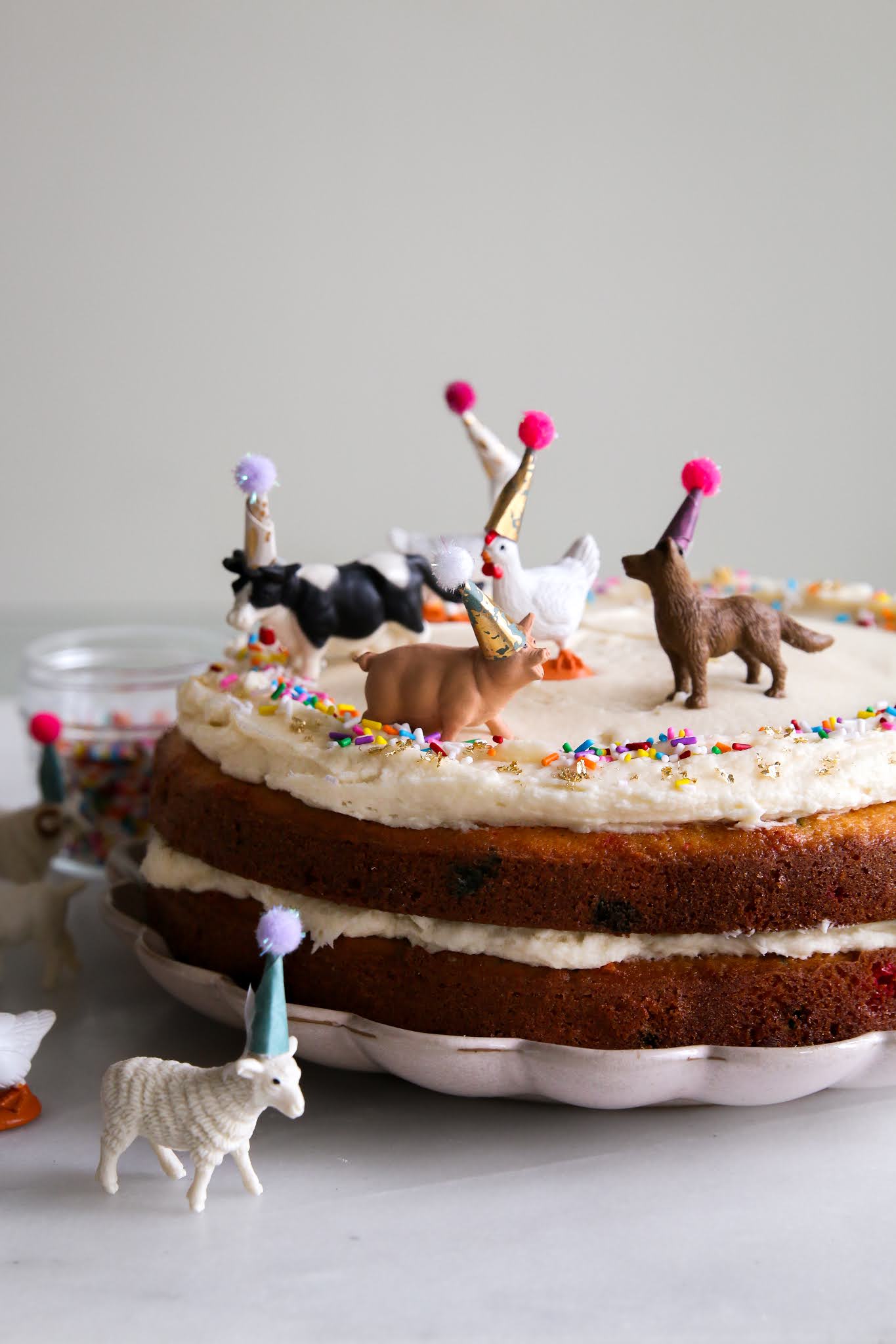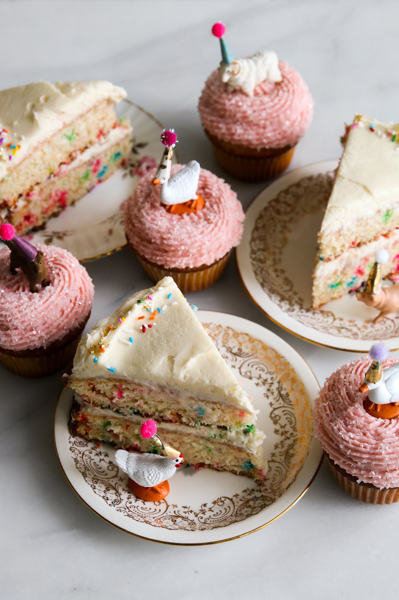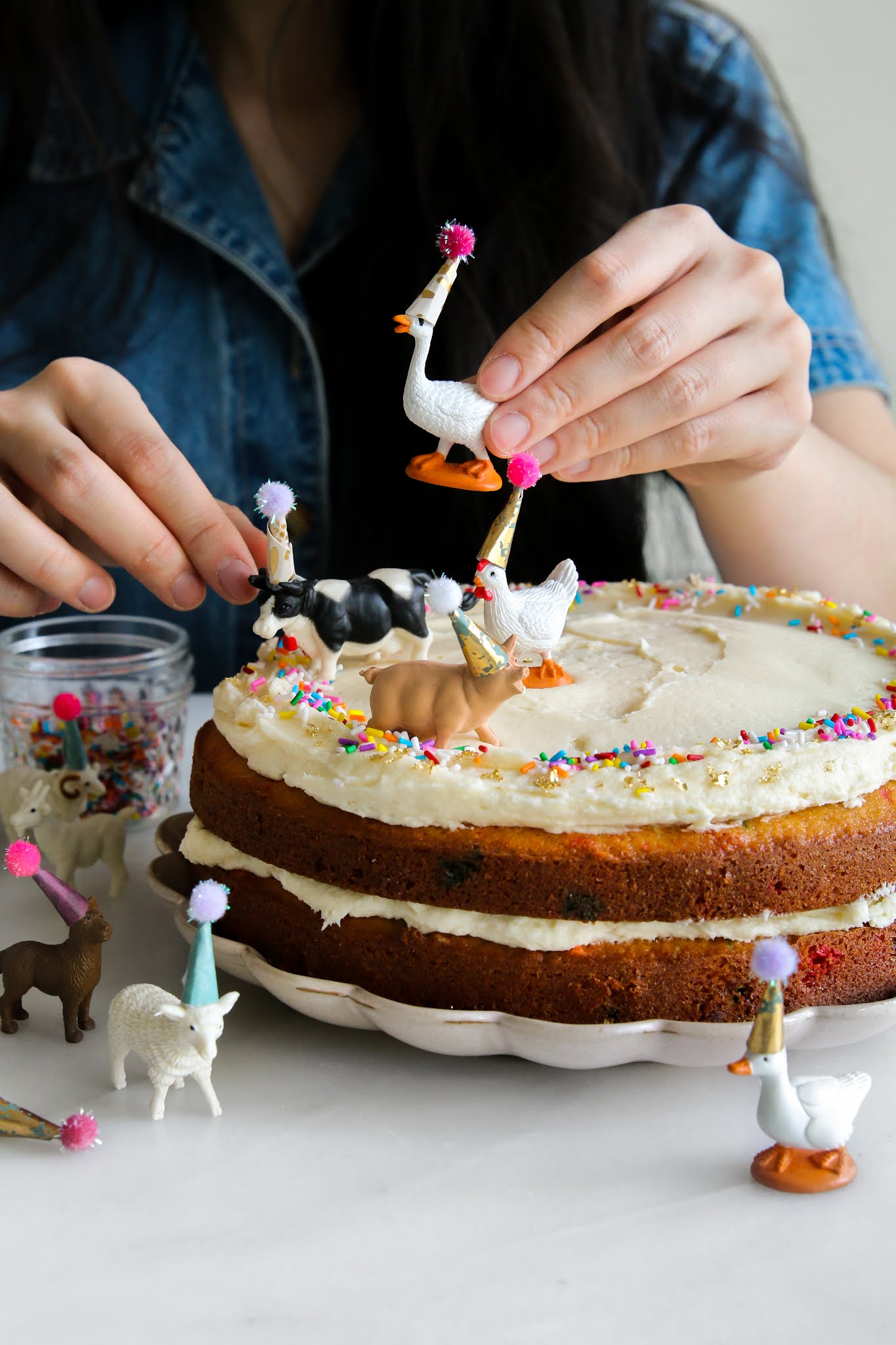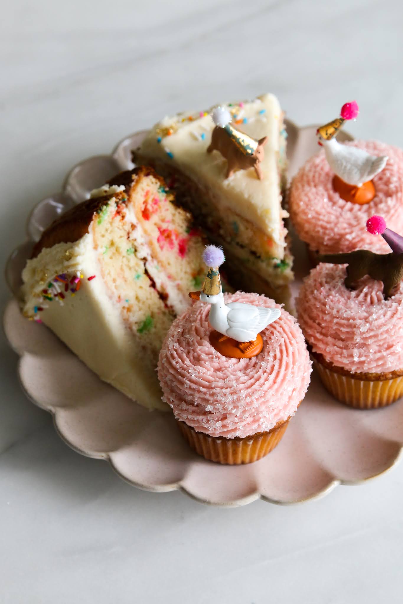 When Williams Sonoma reached out and asked if I would like to do something fun with their exclusive Georgetown Cupcake cake mixes, the answer was an obvious ‘yesss!!!’ with many exclamation marks. I would do anything to relive one of the many amazing treats I had in Washington, DC. Their confetti cake mix and strawberry champagne cupcake mix came just in time for New Year’s so I wanted to share a very simple tutorial on how to decorate a cake to celebrate the arrival of the new year. These party animal decorations come together so easily and turn any cake into a celebration cake. I followed the instructions of both the cake mixes and made the buttercream recipes on the back of the packaging. Obviously, you can use your homemade confetti cake and champagne cake recipes with these decorations, but if you want to try Georgetown Cupcakes in your home, I’m here to tell you that the mixes produce very lovely plush and moist cakes like the ones fresh from their bakery.