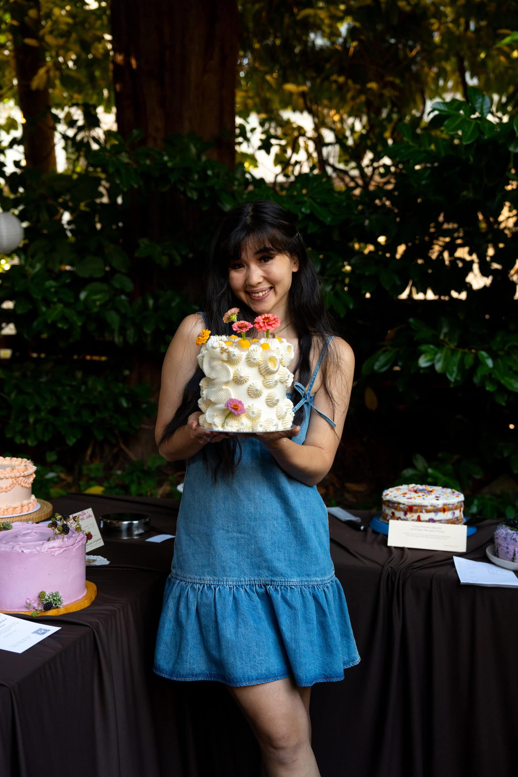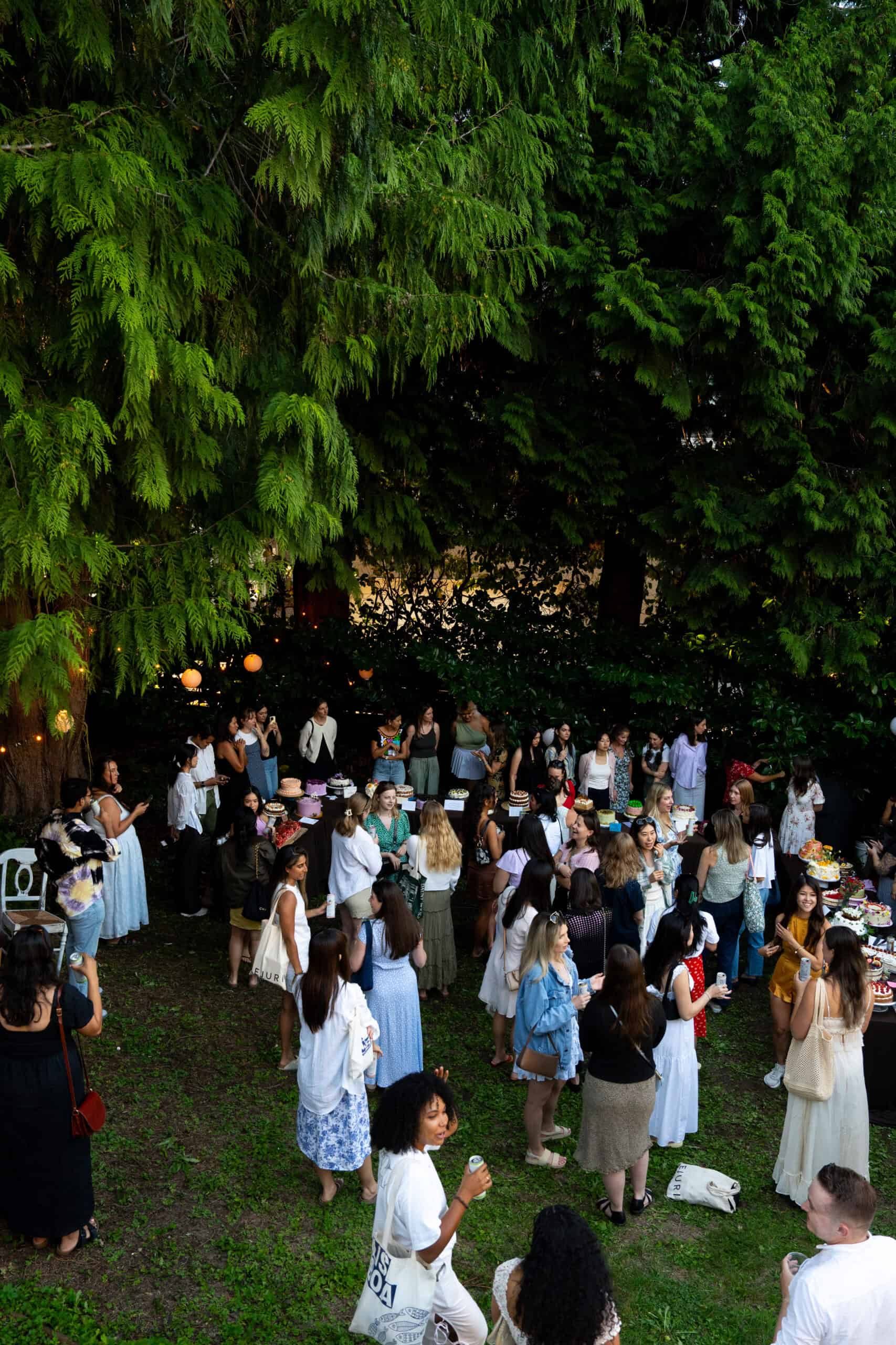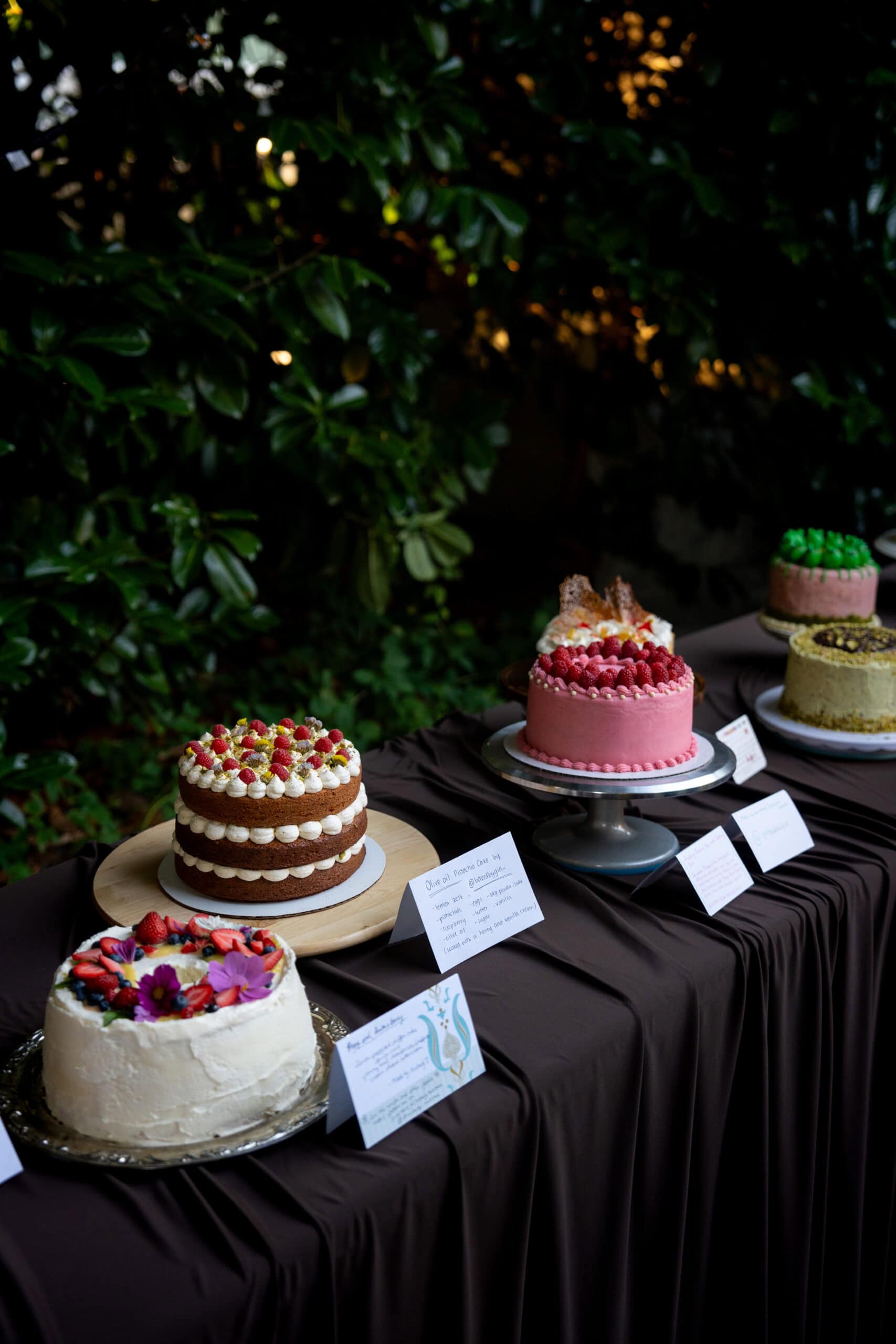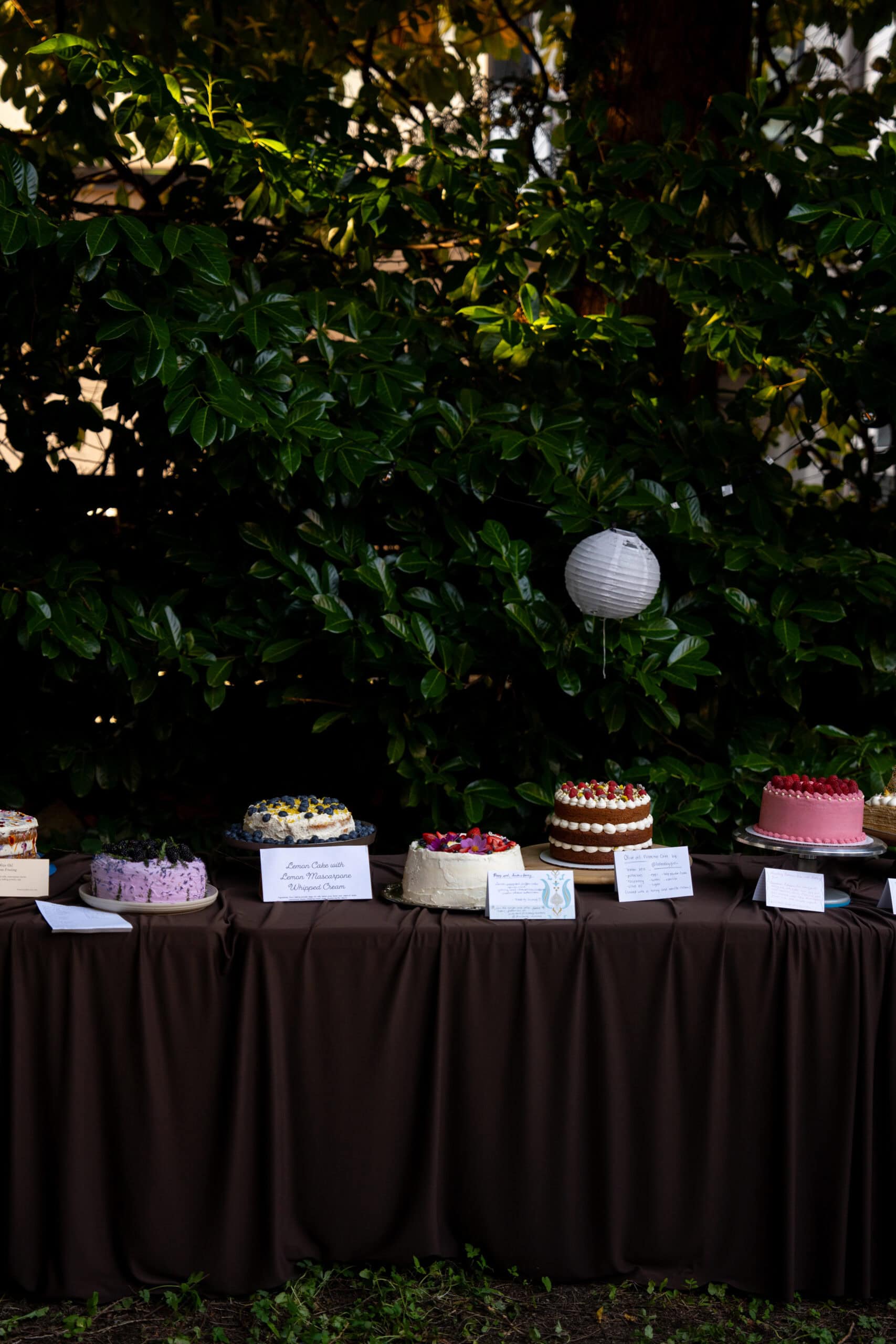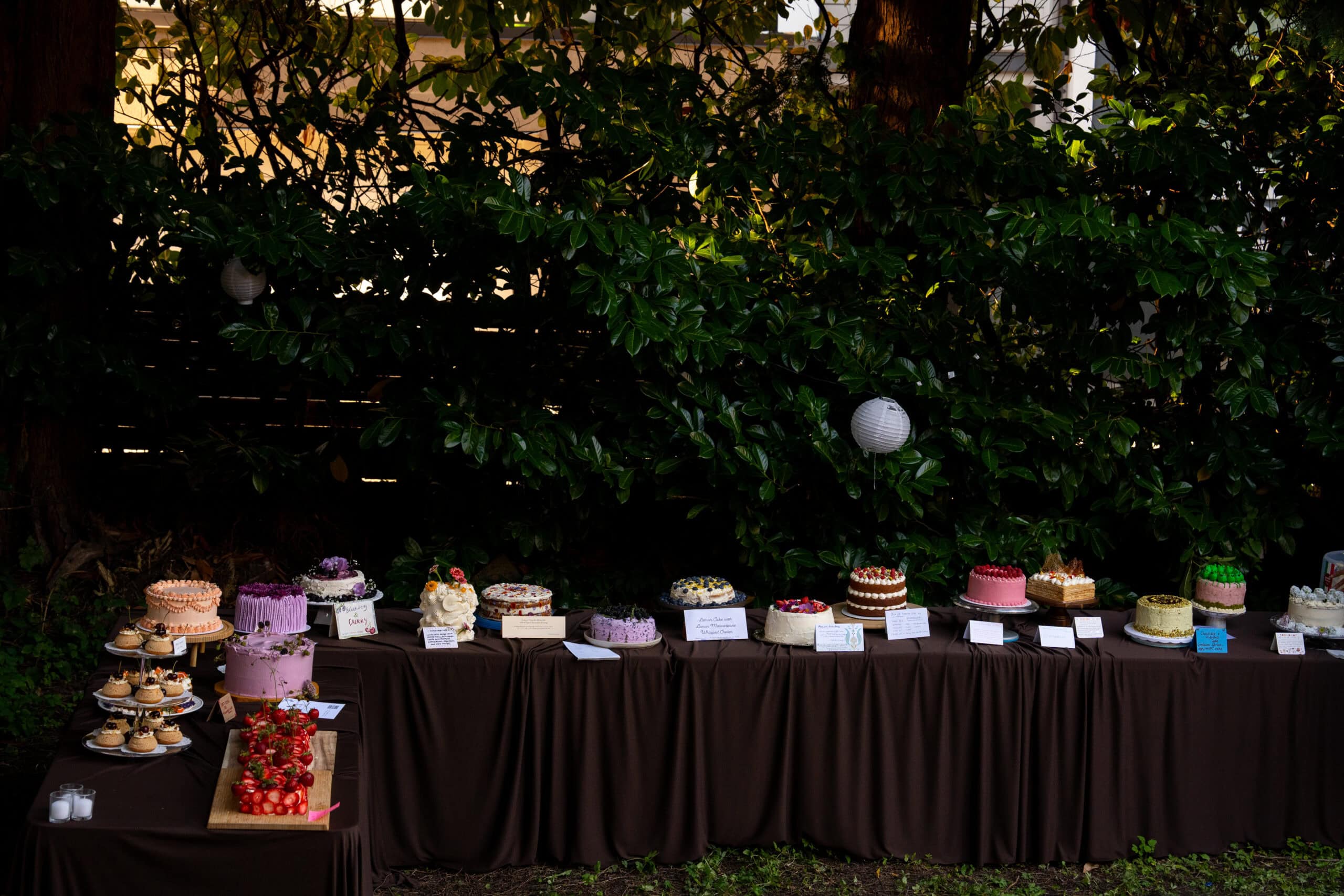 The cake social is hosted by We Should be Friends and Thumn’s Dinner Club. I first learned about the event on social media as one does, when a baker from the a previous cake social posted a video of the event on her page. Thumn’s backyard was the perfect venue of a cake gathering and all the cakes at the first event were so beautiful and inspiring. I’ve already dreamt of going to an event where you’re surrounded by cakes, much like Cake Picnic. I’m always so envious of larger cities that host Cake Picnic events (hopefully Vancouver will be one of the tour stops next year) and this cake social was the perfect garden party that captures the essence of Cake Picnic for my city. To attend cake social, you either apply as a baker or as an attendee. When you’re selected as a baker, you asked to bring a cake that feeds 12 people as well as serving utensils. As an attendee, your only ask is to bring an appetite for four large slices of cake of your choice. At the beginning of the event, each baker gives a small introduction on themselves as well as the cake they’ve brought to the event and inspiration behind the cake. When the clock hit 7pm, each attendee was given a large box and could go up to the bakers with the four cakes they wanted to try the most. After the attendees received their cake slices, the bakers also get to try each other’s cakes. It was so hard to choose which cakes I wanted to try the most because so many of them looked incredible.