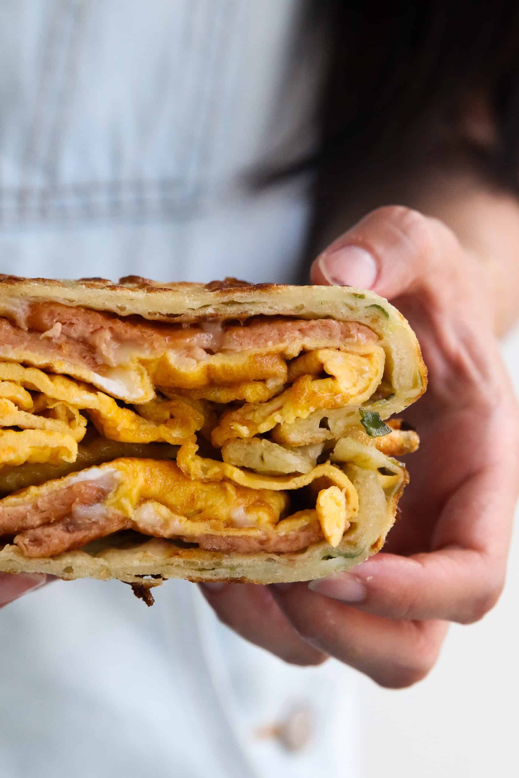 Bacon, Egg, and Cheese Scallion Pancake
