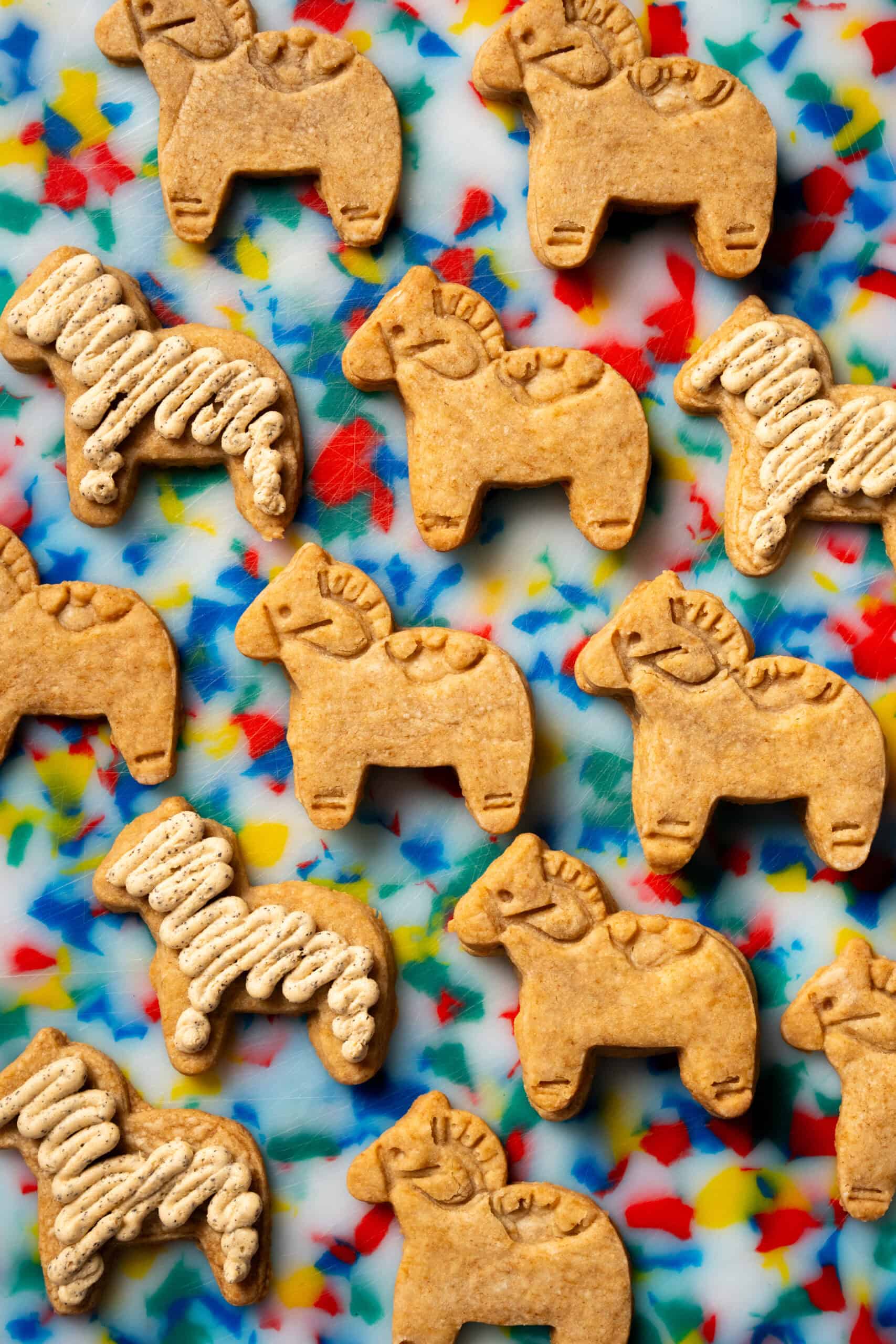 - Dip the tops of cookie into the glaze one at a time, letting the excess drip off. Transfer to a wire rack and decorate as with toppings of choice