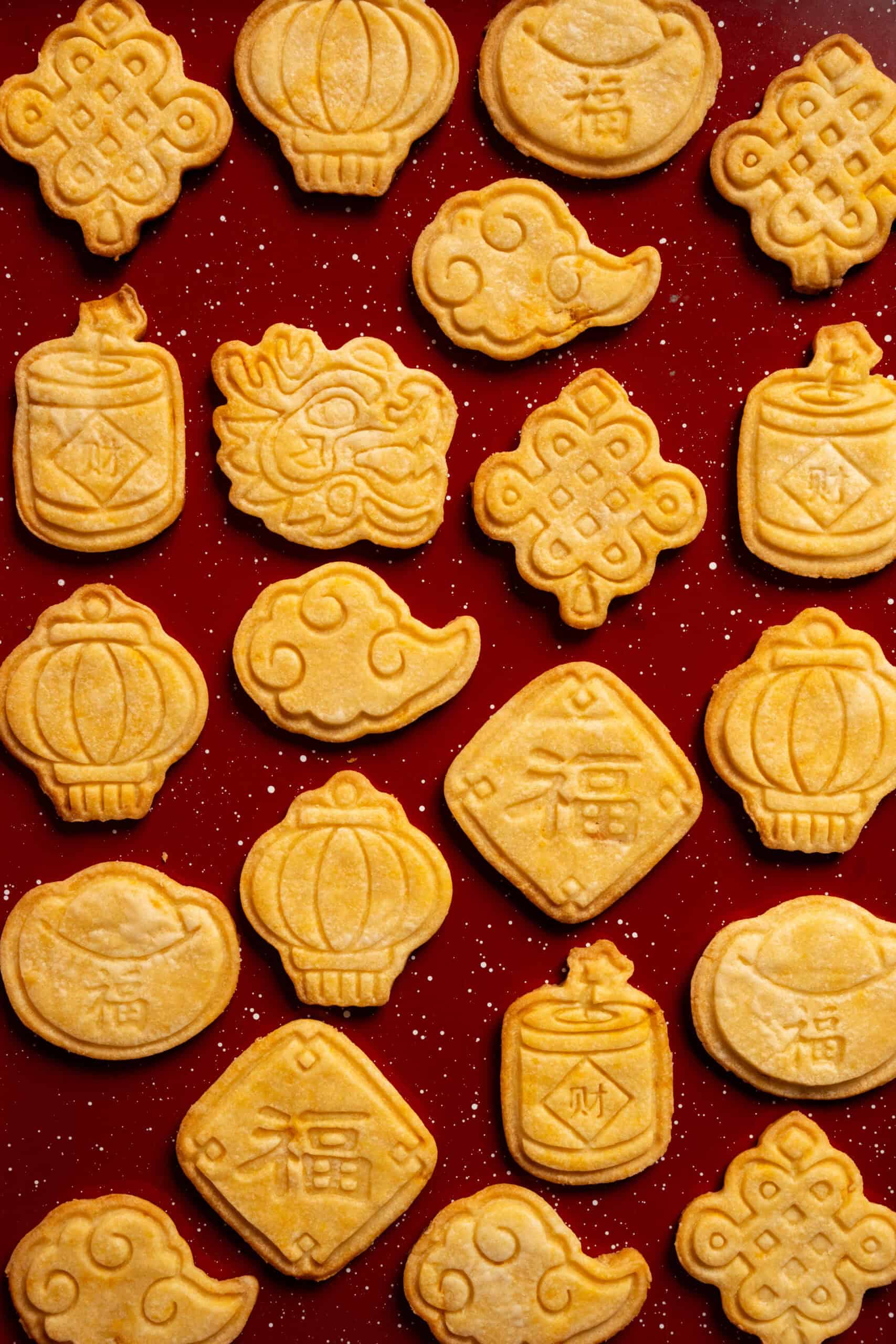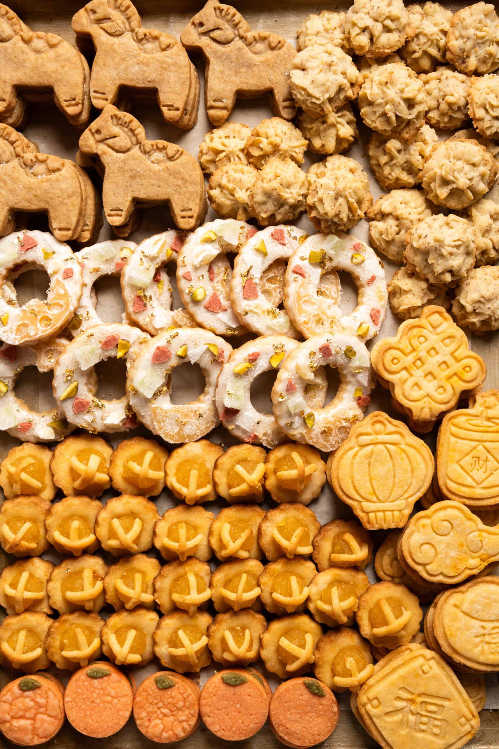 It’s the day before Lantern Festival, the official last day of Chinese New Year celebrations. The two weeks of Chinese New Year celebrations always come and go so quickly. There are certain activities I do every year to celebrate: watch the Chinatown parade, go to my favourite Chinese bakeries for new year cake and egg tarts, visit the Sun Yat-Sen Classical Chinese Garden, and bake auspicious treats to welcome the new year. There are certain recipes I always repeat like my salted egg yolk shortbread or Hong Kong-style butter cookies, but I also like to create some new cookies for my Chinese New Year cookie tins.